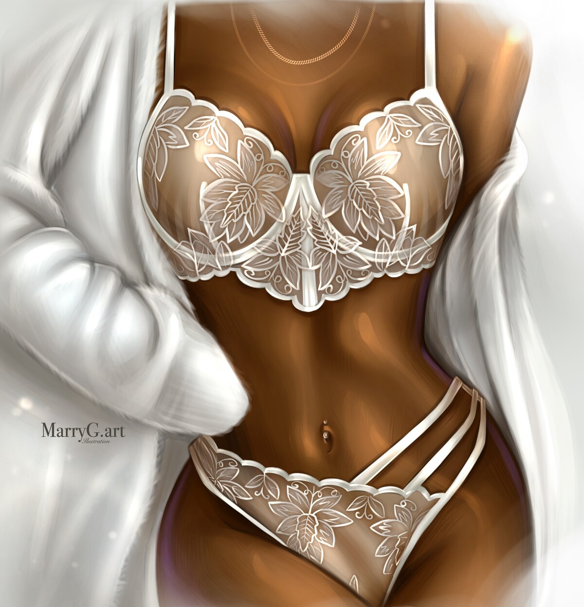 В данном блоке мы разберем рисование блестящей, металической ткани, нарисуем белое свадебное платье, платье с прозрачными вставками, свитер, аксессуары и многое другое.