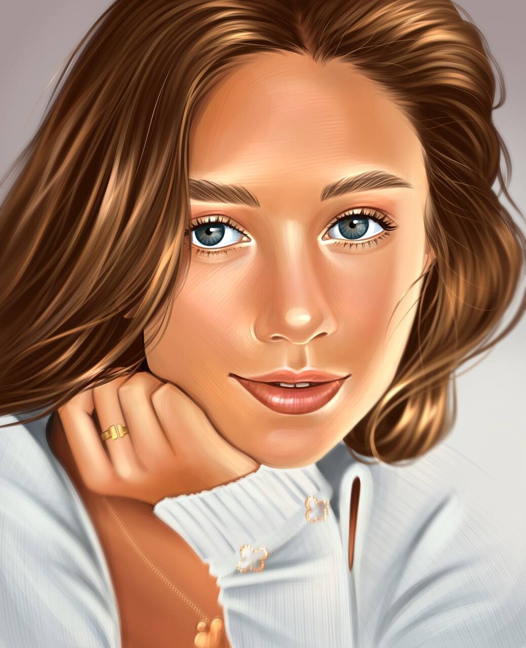 Первый заказ был от подруги, поэтому не так волнительно было. Хотя, она заказала сразу 5 портретов разных людей и сроки были короткие, но такая задача была хорошей тренировкой и пинком, хоть и пугала поначалу. Когда после этого заказывали незнакомые люди, то волновалась, конечно, на начальном этапе. Да и сейчас тоже волнение есть, когда отдаешь работу, мне кажется у меня всегда так будет😅. Новичкам могу посоветовать начинать с рисования близких людей, друзей. И даже если страшно всегда помнить, что все можно исправить, поправить, этим прекрасно диджитал рисование. Каждый новый портрет будет все лучше получаться и уверенность в себе будет расти.
